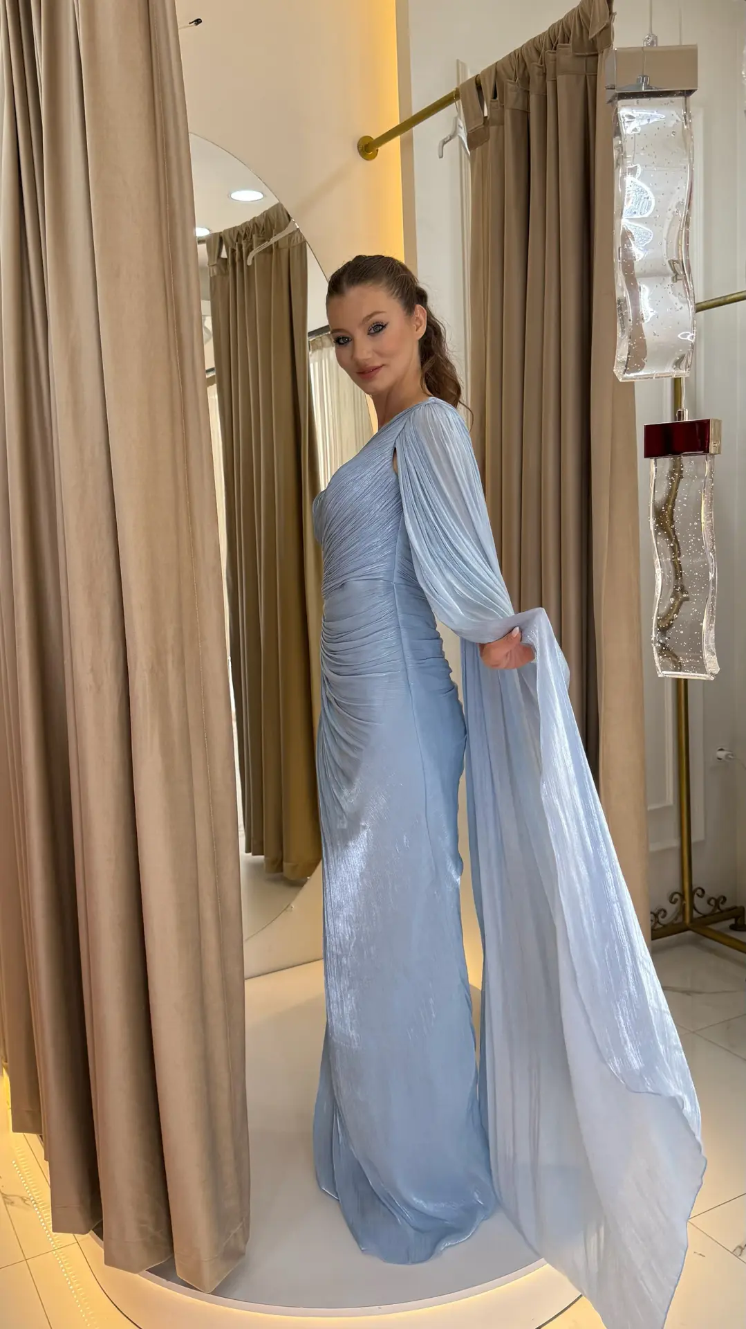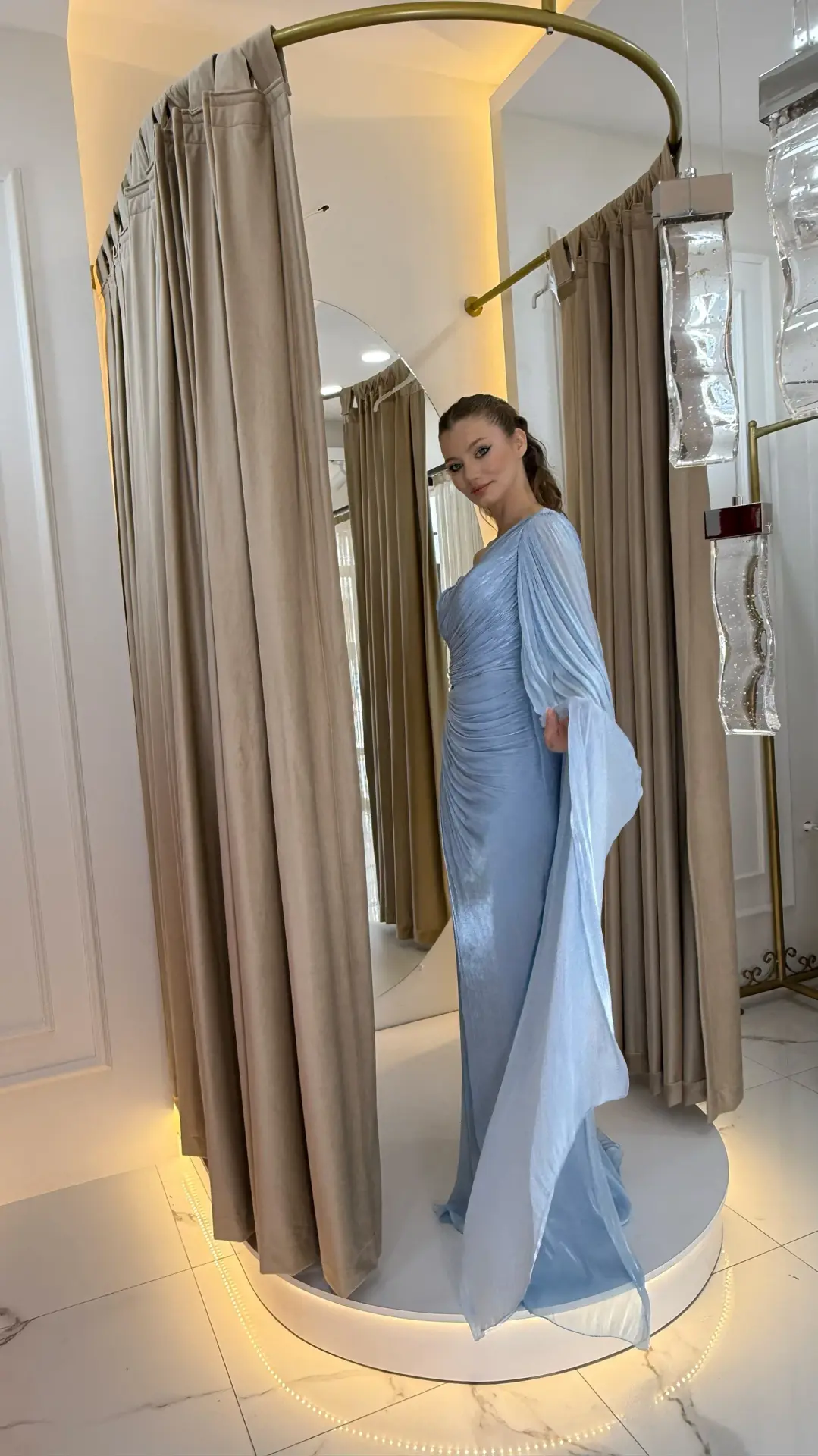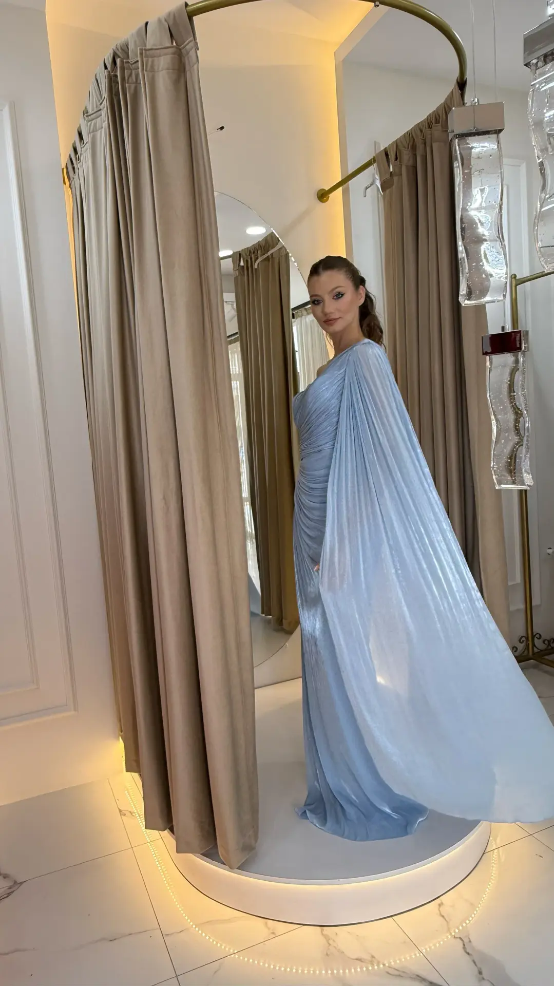 Bebe Mavi Pelerinli Işıltılı Abiye
