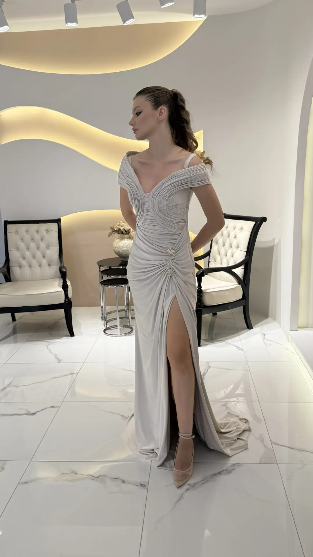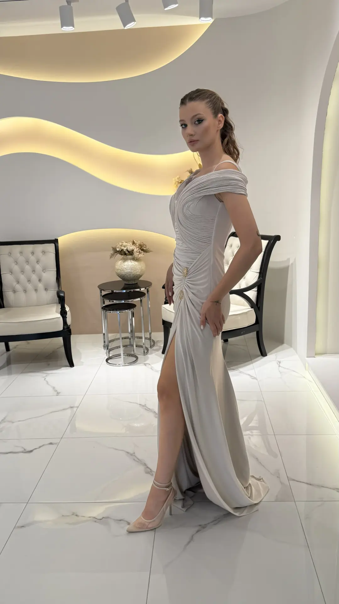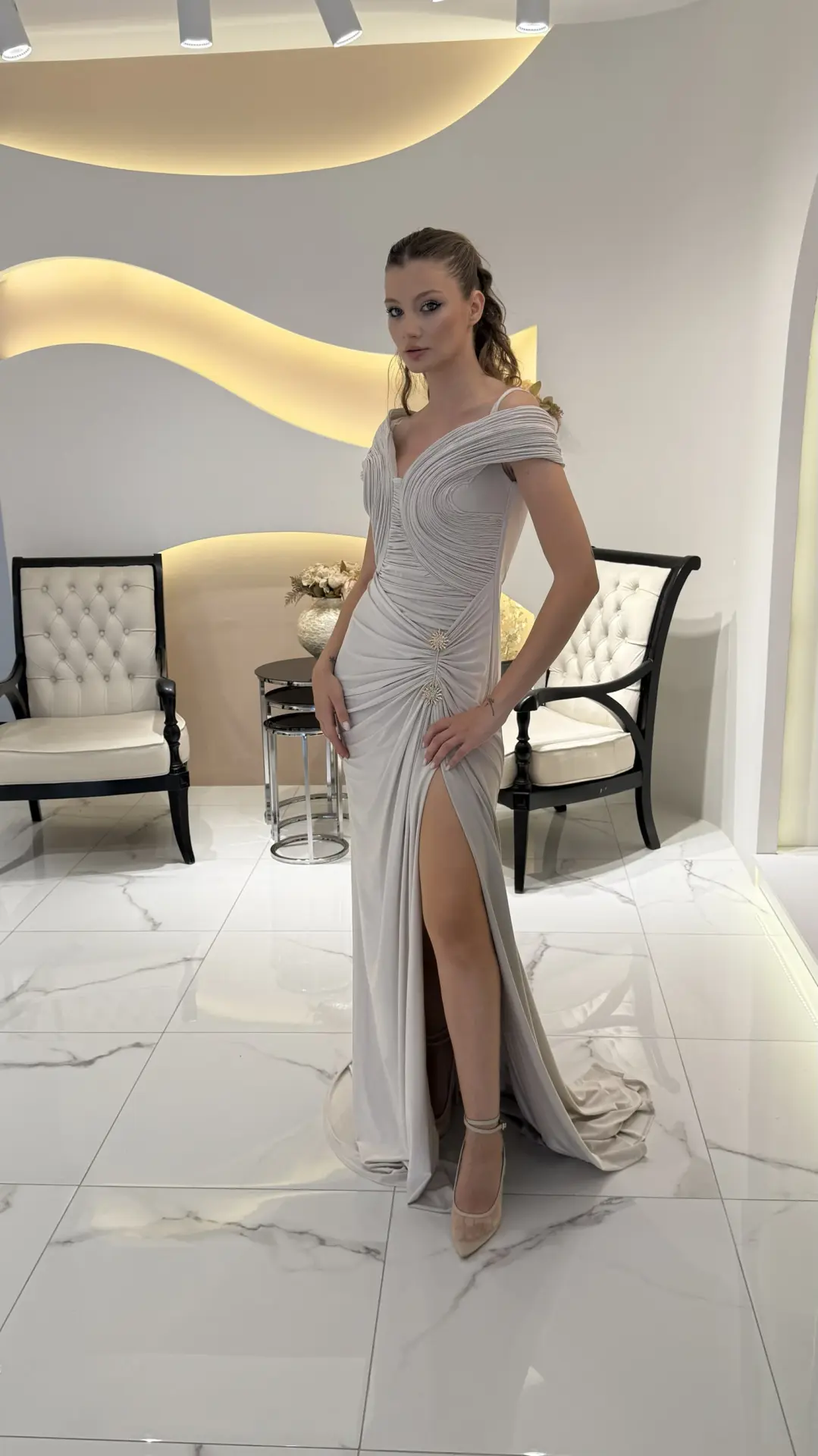Drapeli omuz detaylı abiye, şıklığı ve zarafeti bir araya getiren özel bir tasarımdır. Bu abiye, özel günlerde ve davetlerde dikkat çekici bir görünüm sunmak için ideal bir tercihtir. Yüksek kaliteli kumaş kullanılarak üretilmiş olan Drapeli omuz detaylı abiye, vücut hatlarını zarif bir şekilde vurgularken, rahat bir kullanım deneyimi sağlar. Farklı beden seçenekleri ile (38, 40, 42, 44) her vücut tipine uygun bir fit sunarak, her kadının kendini özel hissetmesine olanak tanır. Modern kesimi ve şık detayları ile bu abiye, davetlerde, düğünlerde ve özel etkinliklerde göz alıcı bir stil yaratmak isteyenler için mükemmel bir seçimdir. Drapeli omuz detaylı abiye, zarif tasarımıyla her kadının gardırobunda yer alması gereken bir parça olarak öne çıkmaktadır.